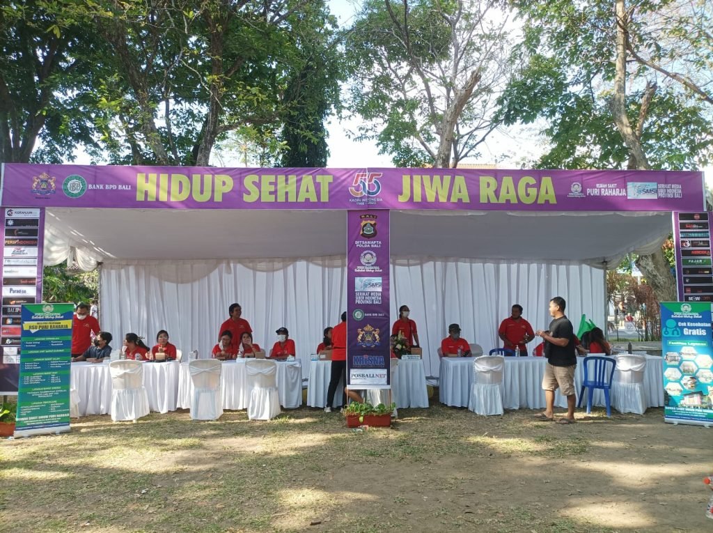 Pemeriksaan kesehatan gratis bersama RSU Puri Raharja meliputi, pemeriksaan tensi darah, gula darah. Kegiatan itu juga dirangkai dengan Senam Senam Sehat Jiwa Raga yang digelar di Lapangan Niti Mandala, Renon, Denpasar.