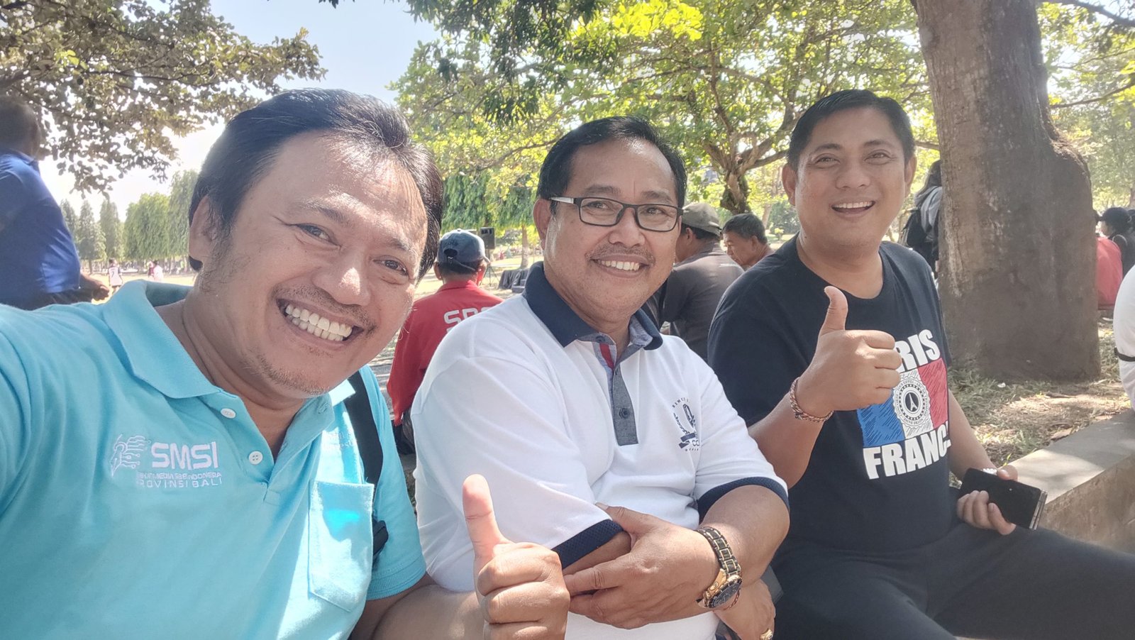 Ket foto dari kiri ke kanan: Ketua Panitia I Gusti Ngurah Dibia, Direktur RSU Puri Raharja dr Bagus Darmayasa, dan Direktur PT Bhakti Rahayu Putu Ivan Yunatana di sela-sela acara Baksos Kesehatan kolaborasi SMSI Bali dengan RSU Puri Raharja di Lapangan Niti Mandala, Renon Denpasar, Minggu (24/9/2023) pagi. (Sumber: Hms SMSI Bali)
