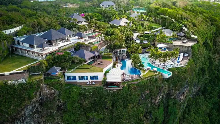The Edge Bali, yang terletak di Uluwatu, menghadirkan pengalaman menginap mewah dengan pemandangan tebing yang memukau.