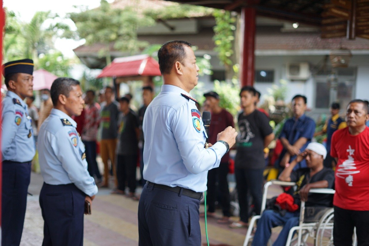 Foto: Kakanwil Kemenkumham Jatim Zaeroji memberikan arahan kepada 74 Warga Binaan Lapas Kelas I Surabaya yang telah mendapatkan pembebasan. (kumham/jatim)