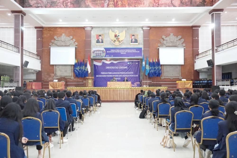 Jimbaran | barometerbali – Universitas Udayana (Unud) melalui Biro Kemahasiswaan selenggarakan Pembinaan Pembelajaran dan Pendidikan Berkarakter bagi mahasiswa Universitas Udayana penerima KIP Kuliah tahun 2022, bertempat di Auditorium Widyasabha Kampus Jimbaran, Rabu (9/11/2022).