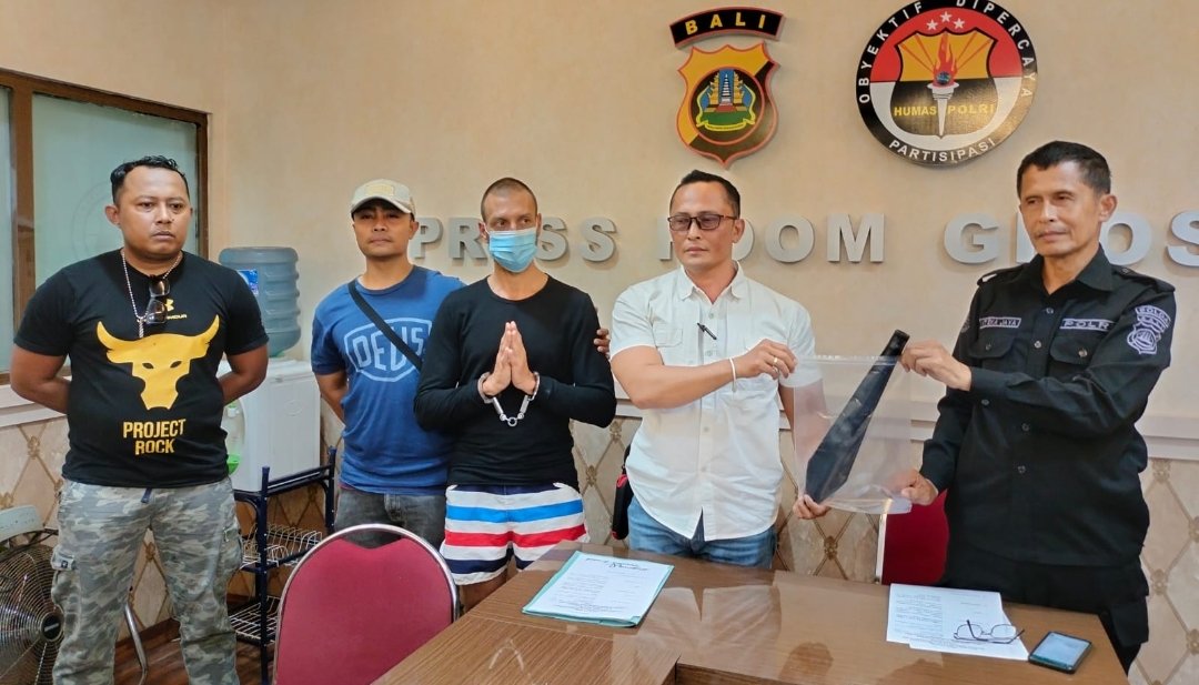 Hasil koordinasi Polda Bali dengan Imigrasi Denpasar, pelaku dinyatakan tiba di Bali satu bulan yang lalu dengan menggunakan visa wisata dan di nyatakan sudah tidak berlaku sejak satu minggu lalu.