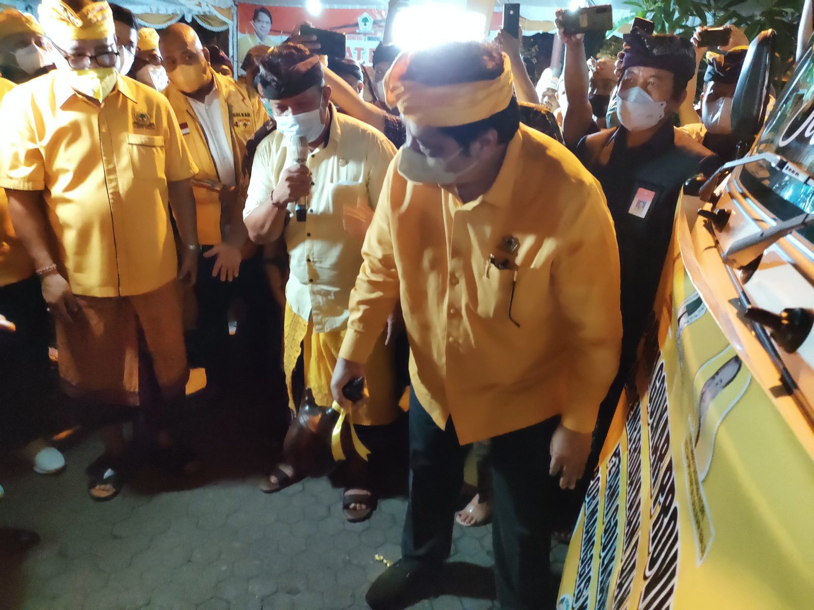 Kedatangan Ketua Umum Golkar didampingi Ketua Umum PP Angkatan Muda Partai Golkar (AMPG) Ilham Permana, Ketua DPD Golkar Provinsi Bangka Belitung, Ketua DPD Golkar Yogyakarta, Anggota Fraksi Golkar DPR RI, dan disambut Ketua DPD Golkar Bali dan Ketua Golkar kabupaten/kota se-Bali, kader Partai Golkar di eksekutif dan legislatif provinsi/kabupaten/kota se-Bali.