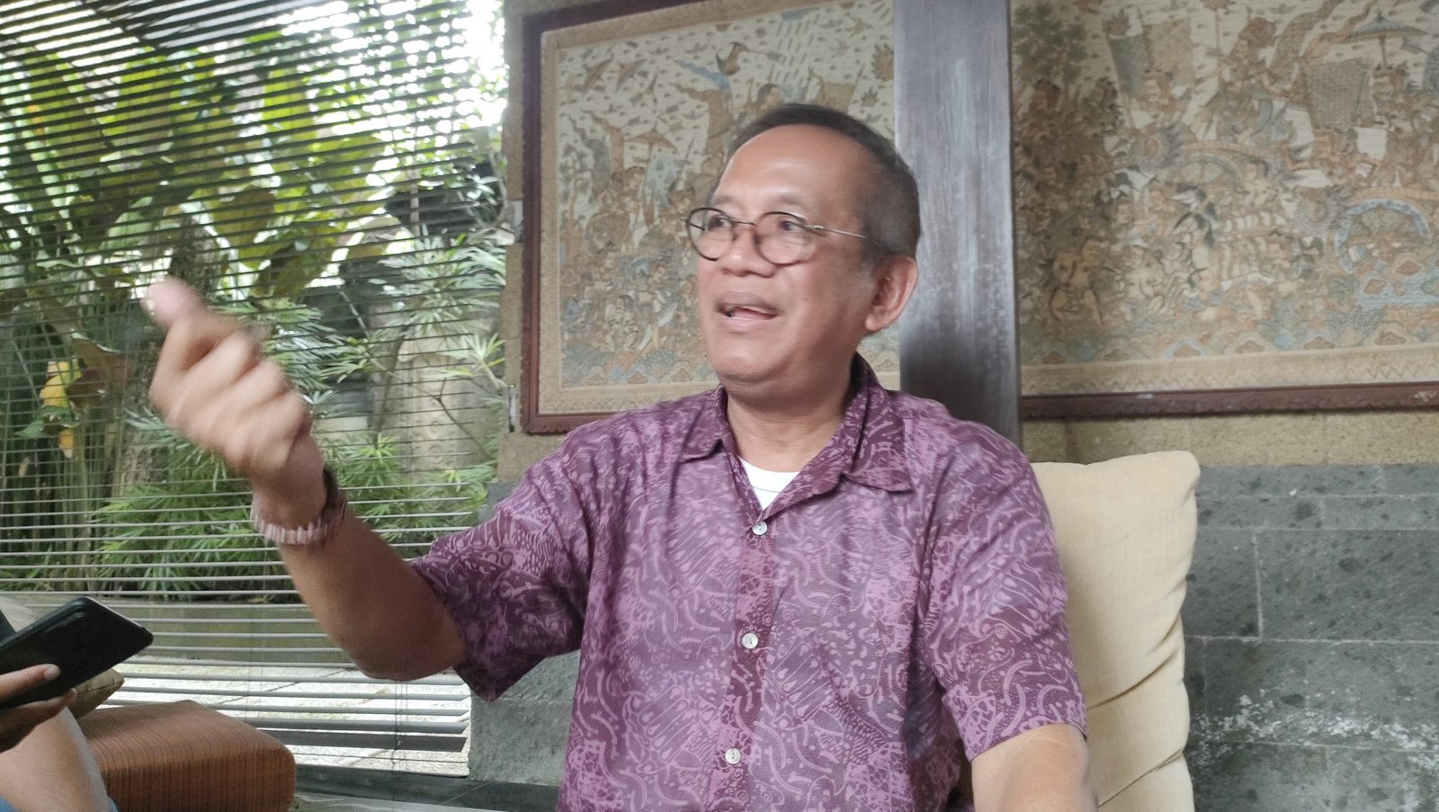 Mantan Kepala Bank Indonesia Bali-Nusra periode 2007 – 2010 Viraguna Bagoes Oka saat diwawancarai awak media di kediamannya di Denpasar, Jumat (28/4/2023). (BB/Db)
