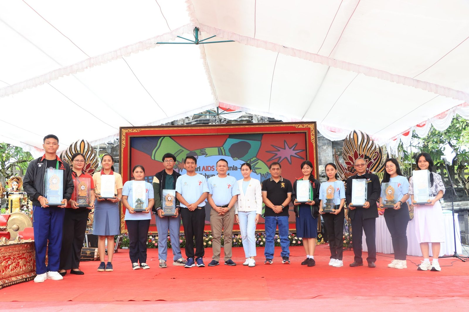 Puncak Peringatan Hari AIDS Sedunia 2024, yang turut dihadiri Kepala Perangkat Daerah terkait di lingkungan Pemprov Bali, jajaran Forkopimda Provinsi Bali, serta masyarakat dan pelajar peduli AIDS, diadakan tes HIV gratis, pengumuman dan pemberian hadiah lomba Temu Remaja KSPAN, serta penampilan beberapa pemenang lomba. Selain itu, penghargaan juga diberikan kepada para penjangkau terbaik dari beberapa LSM yang aktif dalam program penanggulangan AIDS di Bali.