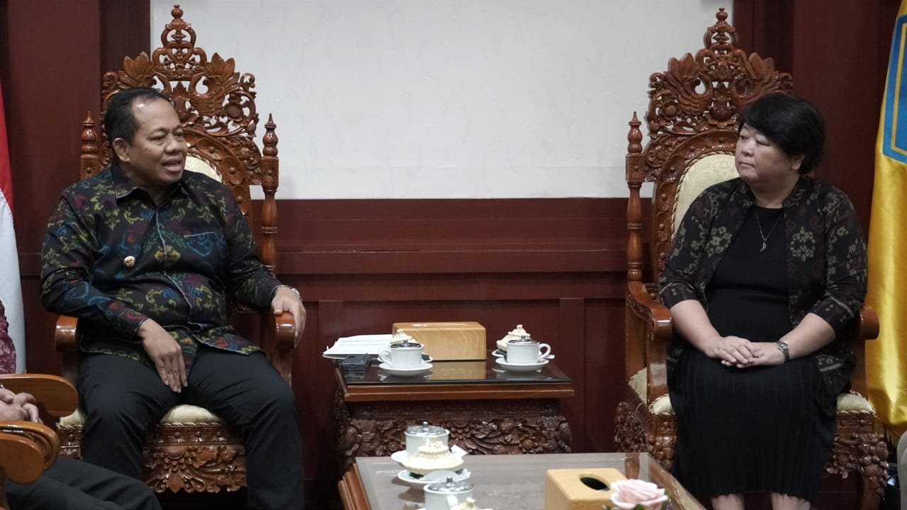 Foto: Ms. Katsumata Harumi berpamitan dengan Penjabat (Pj.) Gubernur Bali S.M. Mahendra Jaya. Dalam pertemuan yang berlangsung di Ruang Tamu Kantor Gubernur Bali, Selasa (19/3/2024). (Sumber: Dok/PB/ BB 69).