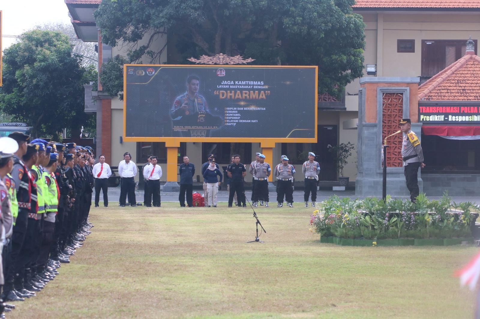 Ket foto: Apel kesiapan pasukan di halaman depan Mapolda Bali, Jumat (23/8/2024). (Sumber: barometerbali)