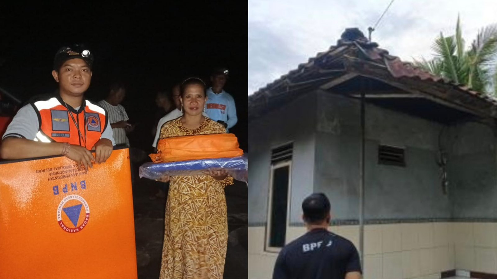 Kolase foto: Petugas BPBD Kabupaten Jembrana menyerahkan bantuan kepada korban angin kencang di Banjar Pebuahan, Desa Banyubiru, Minggu (08/12/24), dan rumah yang rusak akibat terjangan angin kencang di Jembrana. (sumber: barometerbali/217/bpbdjbr)