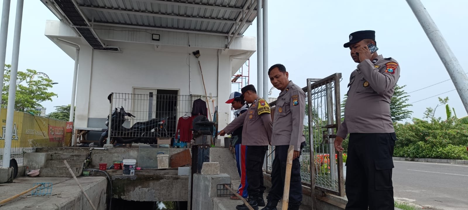 Foto: Polsek Gunung Anyar melaksanakan pengecekan rumah pompa di Jalan Raya MERR Gunung Anyar, Selasa (17/12/2024). (barometerbali/redho)