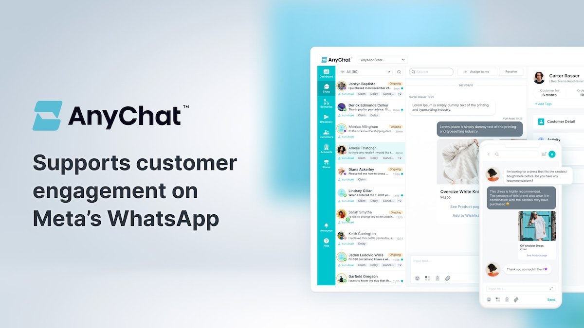 Singapura – 20 Februari 2024 – AnyMind Group [TSE: 5027], sebuah perusahaan BPaaS untuk marketing, e-commerce, dan transformasi digital, hari ini mengumumkan bahwa platform conversational chat, AnyChat, kini telah terhubung dengan WhatsApp, sebuah aplikasi dan platform chatting yang dikembangkan oleh Meta, yang memungkinkan para pengguna AnyChat untuk mengirim dan menerima pesan kepada para pelanggannya melalui WhatsApp.