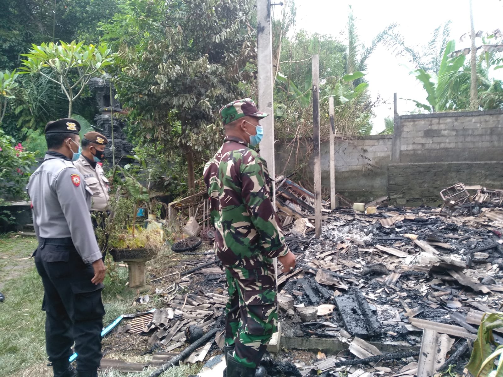 Badung | barometerbali – Unit Kecil Lengkap (UKL) Polsek Abiansemal dengan dipimpin oleh Panit 1 Samapta Ipda I Ketut Sukarata bersama anggota mendatangi Tempat Kejadian Perkara (TKP) kebakaran gudang milik I Made Sutarmawan warga dari Banjar Puseh Desa Angantaka, Kecamatan Abiansemal, Kabupaten Badung, Sabtu (12/2/2022) pukul 16.00 Wita.