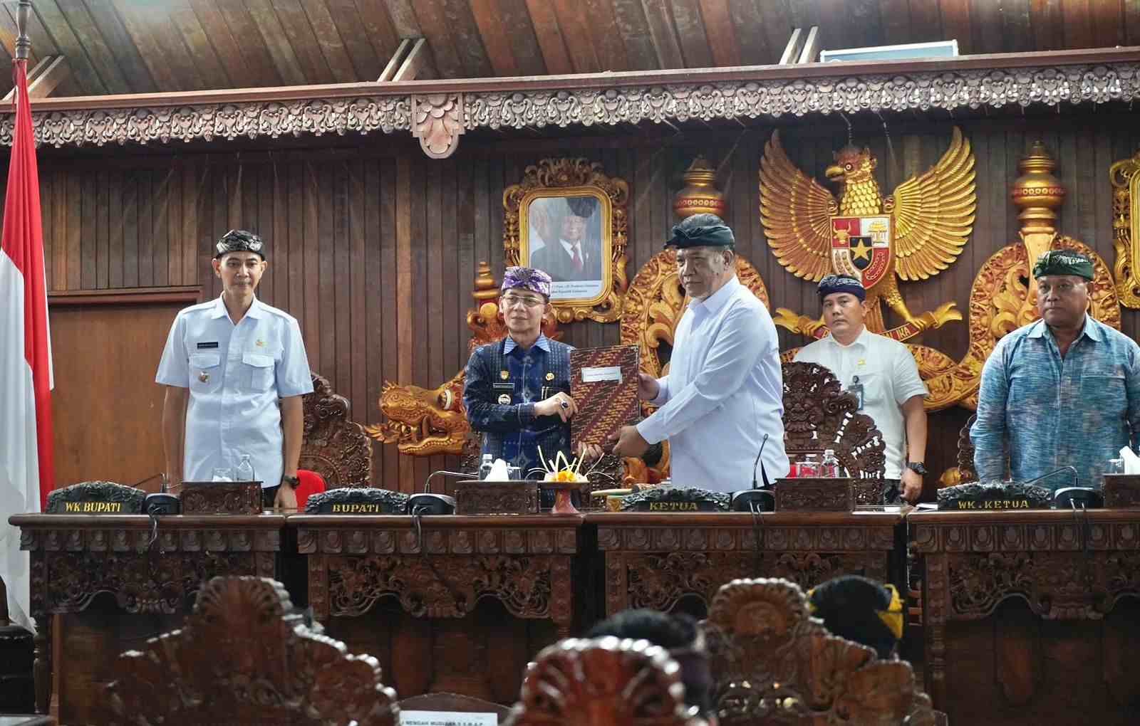 Bupati Satria menyampaikan apresiasi kepada pimpinan dan anggota DPRD Klungkung atas persetujuan pinjaman daerah dari PT Sarana Multi Infrastruktur (PT SMI).