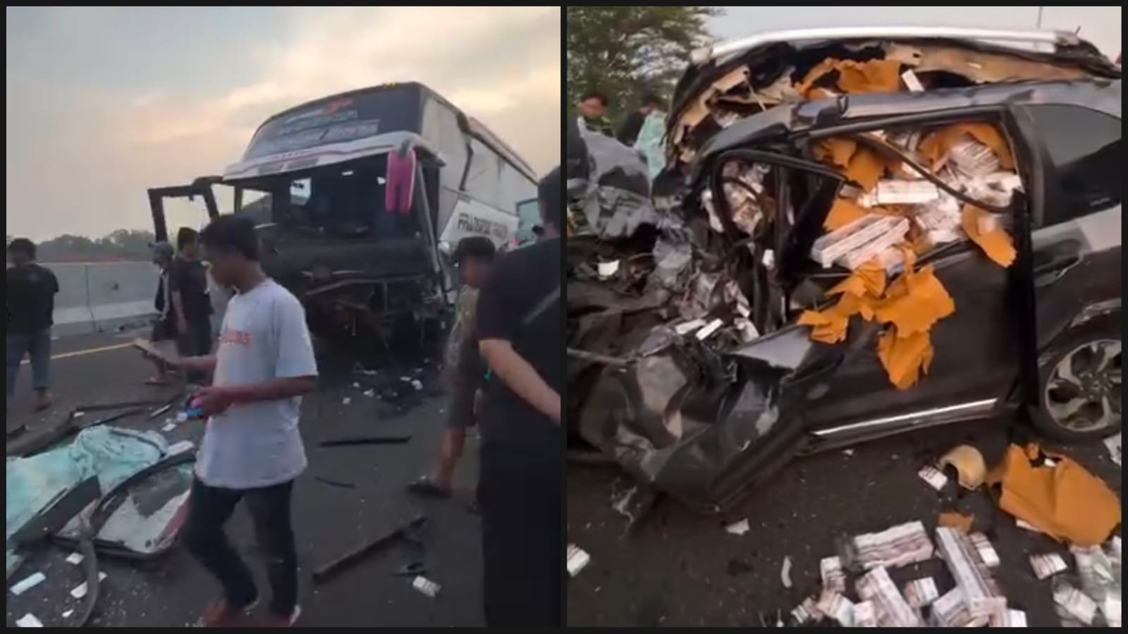 Sementara itu, dari video amatir lainnya, terlihat sebuah mobil juga tampak ringsek imbas kecelakaan itu.