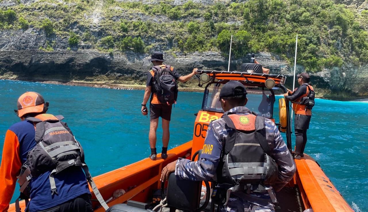 Foto: Pencarian korban hilang terseret arus saat mandi di Pantai Kelingking, Nusa Penida, Bali, Rabu, (30/10) pagi. (barometerbali/213)