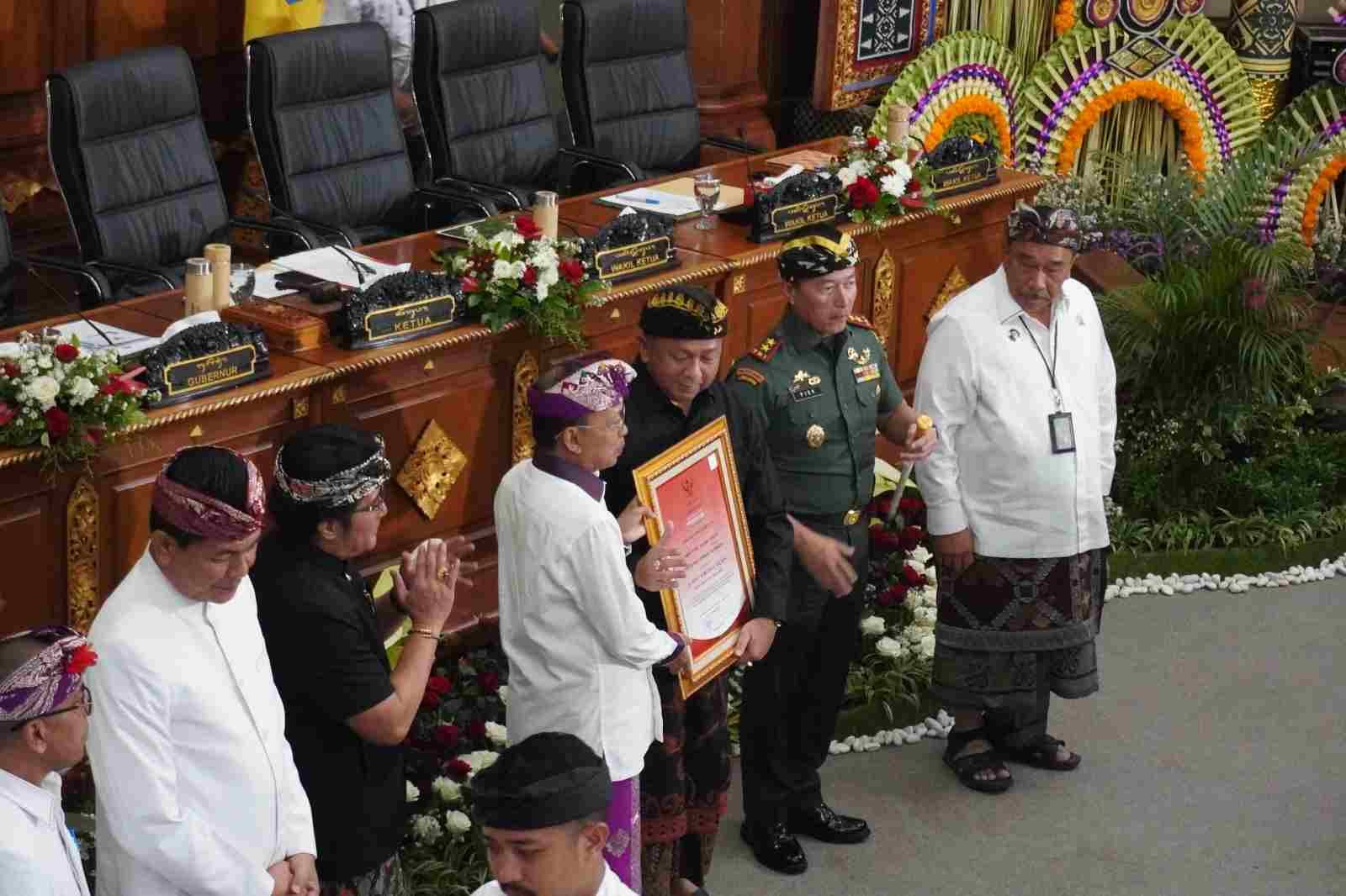 Dalam Rapat Paripurna DPRD tersebut juga diserahkan Penghargaan “Kerthi Bali Sewaka Nugraha” kepada Dr Ketut Sumedana yang telah menginisiasi dan karyanya dalam pembentukan Bale Kertha Adhyaksa, mewujudkan visi “Nangun Sat Kerthi Loka Bali” melalui pola Pembangunan Semesta Berencana dalam Bali Era Baru.