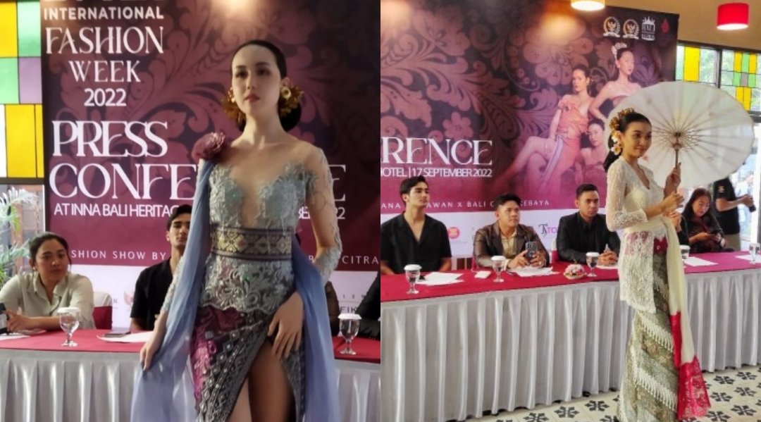 Caption: Lenggak-lenggok peragawati yang akan tampil nanti pada Bali International Fashion Week (BIFW) 2022 saat press conference pertama di Inna Bali Heritage Hotel Denpasar, Sabtu, (17/9/2022). Foto: BB/istimewa.