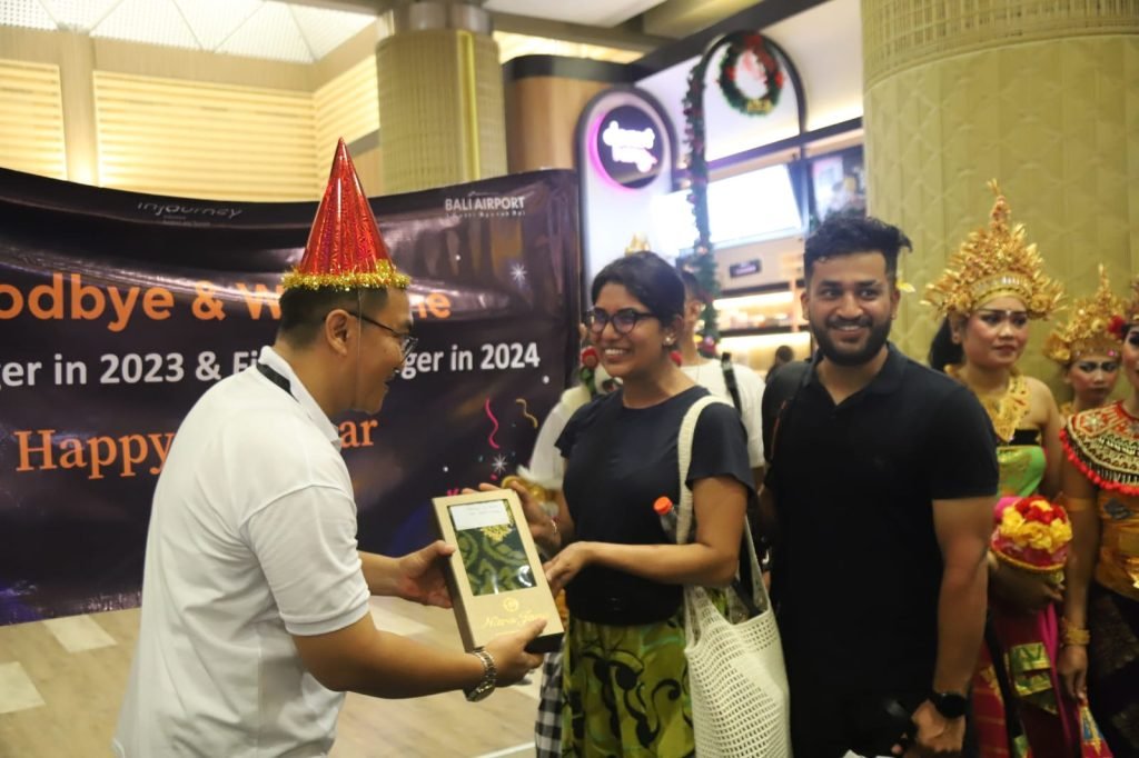 PT Angkasa Pura I bersama Kementerian Pariwisata dan Ekonomi Kreatif menghadirkan suguhan berbeda bagi penumpang yang bepergian pada momen pergantian tahun di Bandar Udara Internasional I Gusti Ngurah Rai, Minggu (31/12/2023) lalu.