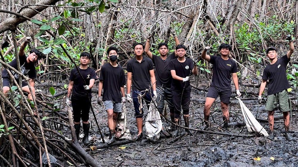 Kegiatan bersih-bersih sampah mangrove BEM FEB Unud bersama Sungai Watch di Mangrove Last Point, Denpasar, Jumat (10/2/2023). (Foto: FEB Unud/Biro Pers)