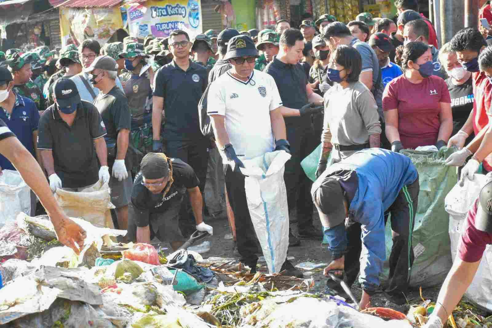 Sejak pagi hari tampak seluruh elemen yang terdiri dari ASN, OPD, TNI, Polri serta masyarakat sekitar bahu membahu dalam membersihkan kawasan tersebut. Dimana, sampah yang awalny menumpuk dan tersebar disepanjang kawasan tersebut berhasil dibersihkan sekitaran pukul 09.00 WITA.