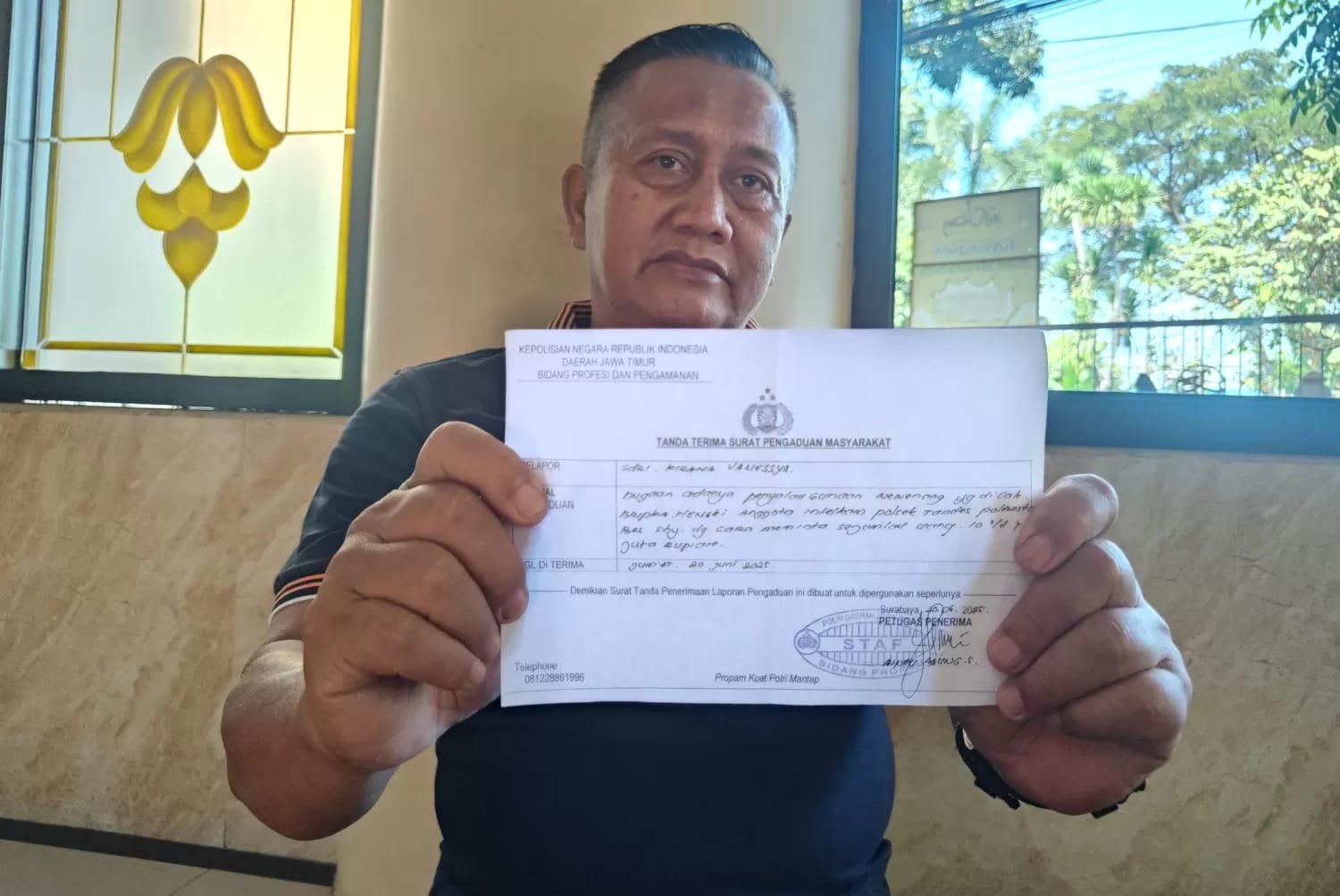 “Katanya mau dibawa ke Polda Jatim untuk klarifikasi. Tapi malah diputar-putar di Surabaya, tanpa tujuan jelas. Mobil dibawa muter-muter, dan mulai muncul permintaan uang,” terangnya.