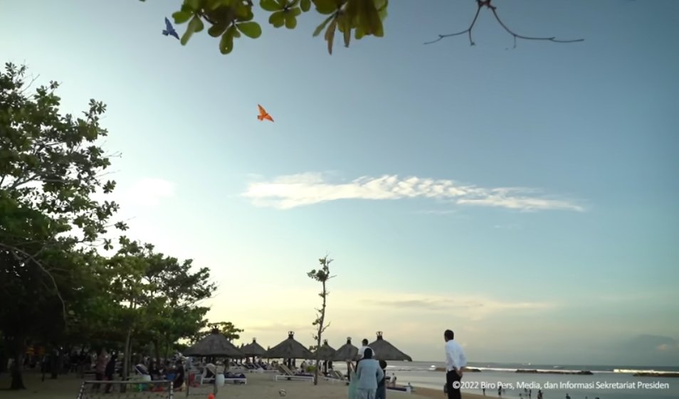 Presiden Jokowi mengajak cucunya “melayangan” (bermain layangan) di pantai sekitaran Nusa Dua, Kabupaten Badung. Foto: BPMI Setpres/Lukas