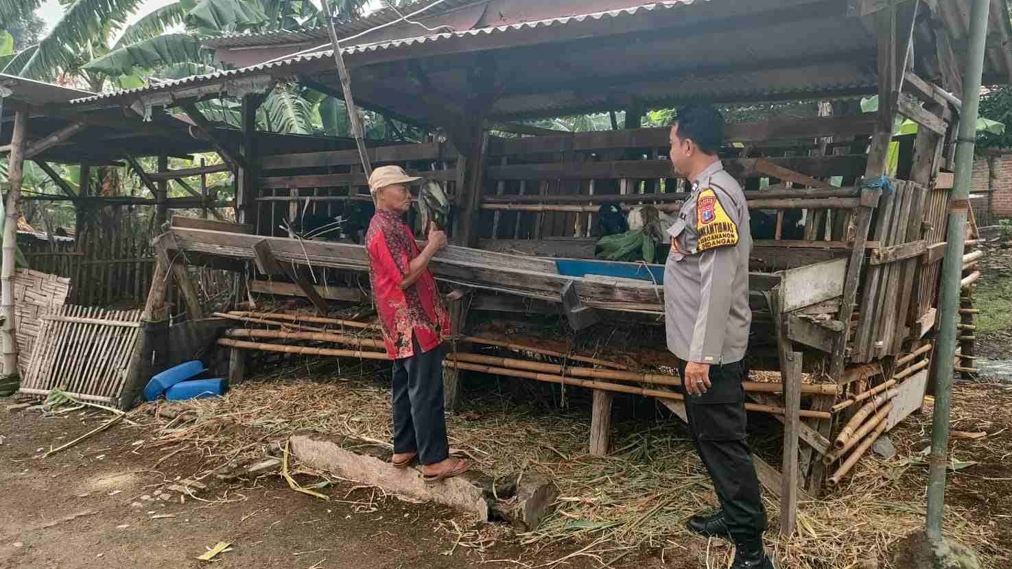 Foto: Bhabinkamtibmas Desa Keboananom, Kecamatan Gedangan, Aipda Supariyanto, melaksanakan sambang ke peternakan kambing milik warga di wilayah binaannya, Jum'at (25/04/25). (Barometerbali/redho)