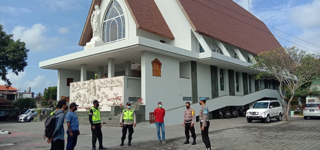 Dalam kegiatan ini juga dilakukan pemantauan dan pengamanan oleh Bhabinkamtibmas Kelurahan Abianbase , personil Polsek Gianyar dan Polres Gianyar di bawah pimpinan Waka Polsek Gianyar AKP Dewa Putu Raka, Satgas Covid Gereja serta Pam Swakarsa Gereja.
