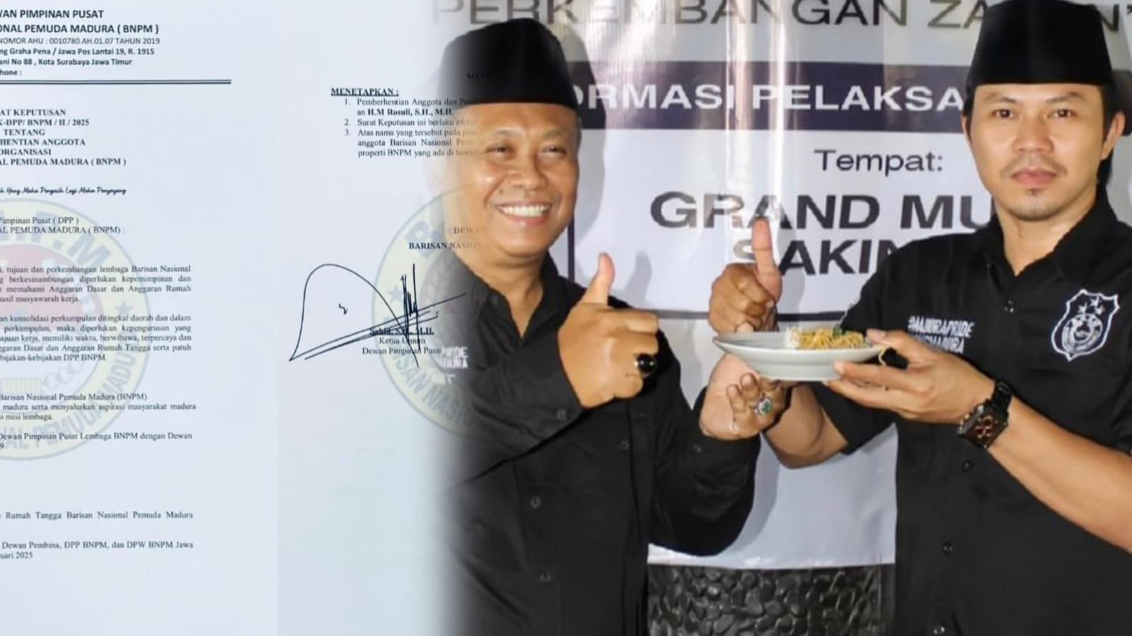 Foto: Ketua Umum DPP BNPM Sahid, S.H., M.H. (kanan) serta Sekretaris Jenderal Efendi A. Katili, S.H, mengambil langkah tegas dengan mencopot dan memberhentikan H.M. Rosuli, S.H., M.H. dari jabatannya sebagai Ketua DPD BNPM Kota Surabaya. (barometerbali/redho)