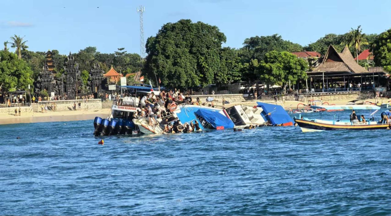 Barometer Bali | Nusa Penida – Kecelakaan laut menimpa sebuah kapal cepat (fast boat) The Tanis di Pelabuhan Tanjung Sanghyang, Desa Lembongan, Kecamatan Nusa Penida, Kabupaten Klungkung, Rabu (4/6/2025) sore. Peristiwa terjadi sekitar pukul 16.30 Wita ketika boat tersebut bersiap bertolak menuju Pelabuhan Sanur. Kapal tiba-tiba dihantam ombak besar dari belakang, mengakibatkan hilang keseimbangan hingga akhirnya terbalik tak jauh dari bibir pantai.