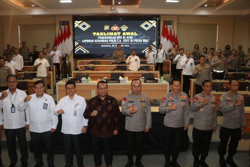 Kegiatan ini dihadiri Wakapolda Bali Brigjen Pol I Ketut Suardana, Penanggung Jawab Tim BPK RI Akhsanul Khaq, Wakil Penanggung Jawab 1 BPK RI Sarjono, Wakil Penanggung Jawab 2 BPK RI Totok Sucahyo, serta Pejabat Utama Polda Bali dan Kapolres/kota yang hadir secara langsung maupun hadir melalui virtual meeting.