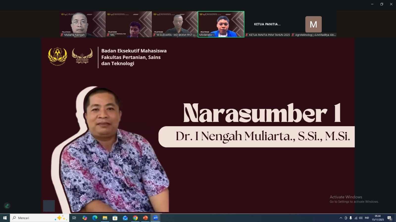 Hal tersebut ditegaskan oleh akademisi Prodi Agroteknologi Universitas Warmadewa, Dr. I Nengah Muliarta, S.Si., M.Si., saat menjadi narasumber dalam Pelatihan Penulisan Proposal PKM. Acara tersebut diselenggarakan oleh Badan Eksekutif Mahasiswa (BEM) Fakultas Pertanian, Sains dan Teknologi Universitas Warmadewa pada Sabtu (15/11/2025).