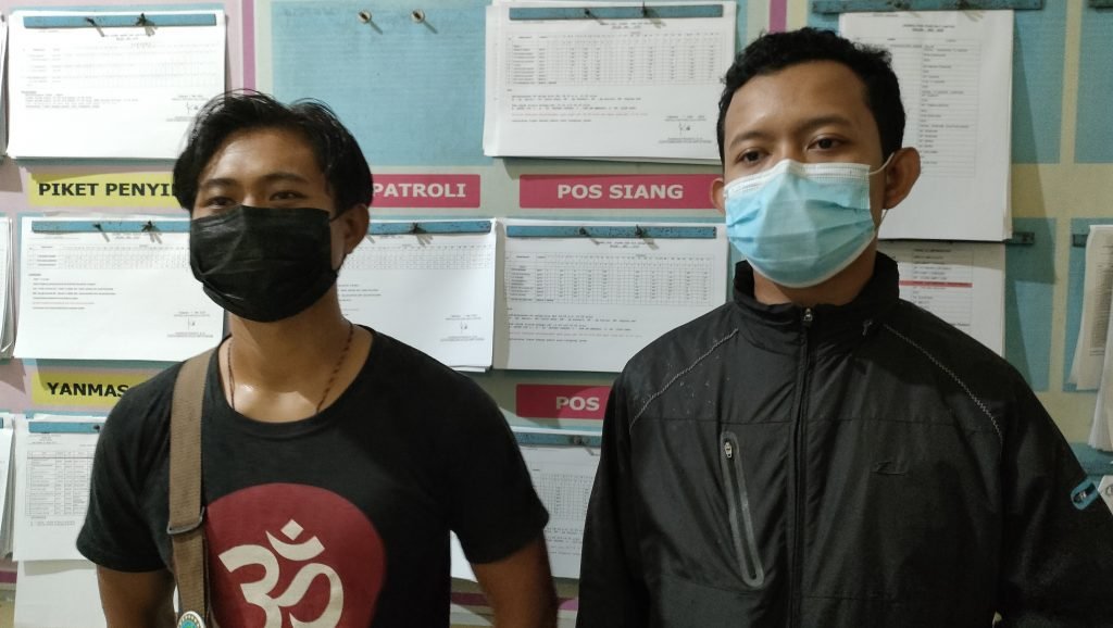 Ketua PC KMHDI Tabanan Putu Edi Pratama (kiri) dan Sekretaris Arya Adi Gunawan (kanan) saat mengawal kasus Alina Yogi di Polres Tabanan (Foto: BB)
