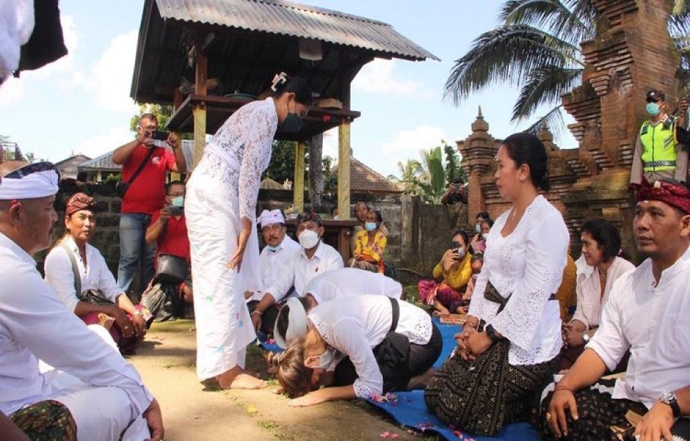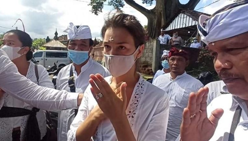 Tabanan | barometerbali – WNA Rusia Alina Fazleeva (28) alias Alina Yogi yang menghebohkan dunia maya berpose bugil di pohon sakral Kayu Putih berusia ratusan tahun itu hadir mengikuti upacara pabersihan (pembersihan, red) di Pura Babakan, Banjar/Desa Adat Bayan, Desa Tua, Kecamatan Marga, Tabanan, Jumat (6/5/2022) sekitar pukul 12.00 Wita.