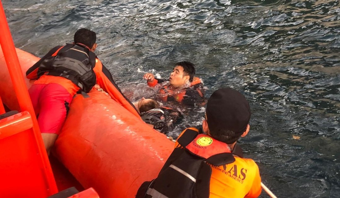 “Kami menurunkan 4 orang rescuer dengan cara berenang membawa tali,” kata Cakra Negara, Koordinator Unit Siaga SAR Nusa Penida.