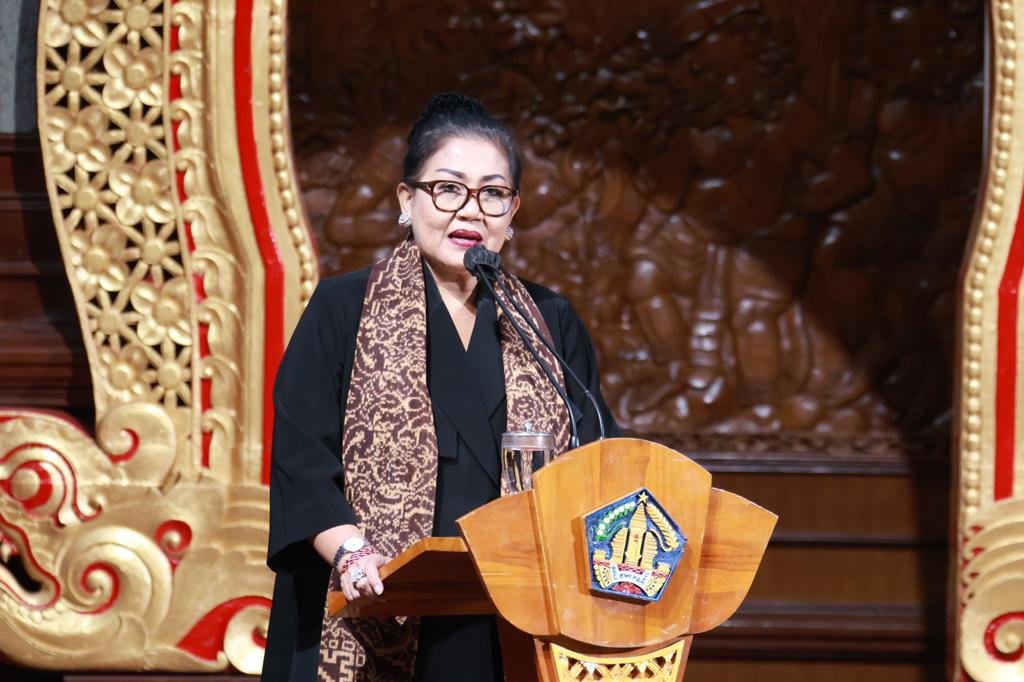 Foto: Ketua Dekranasda Provinsi Bali, Ny. Putri Koster menyatakan gerah terhadap pelaku pelanggar kelangsungan warisan leluhur Bali saat menutup Pameran IKM Bali Bangkit Tahap IV Tahun 2023 di Art Centre Denpasar, Rabu (31/5/2023). (BB/Hms Pemprov Bali)