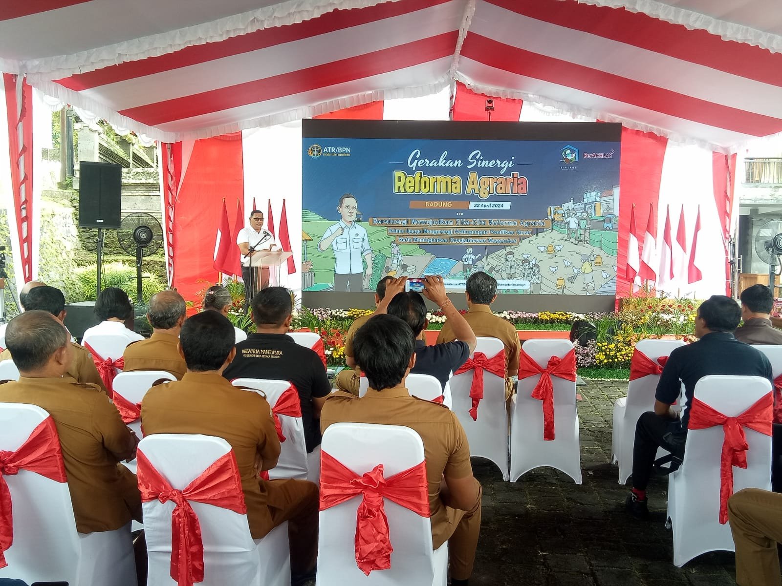 Bupati Badung Asisten II Pemkab Badung Ida Bagus Gede Arjana mewakili Bupati Badung mengapresiasi sinergi program Reforma Agraria yang dilakukan ATR/BPN Badung. (Sumber: BB/Rian)