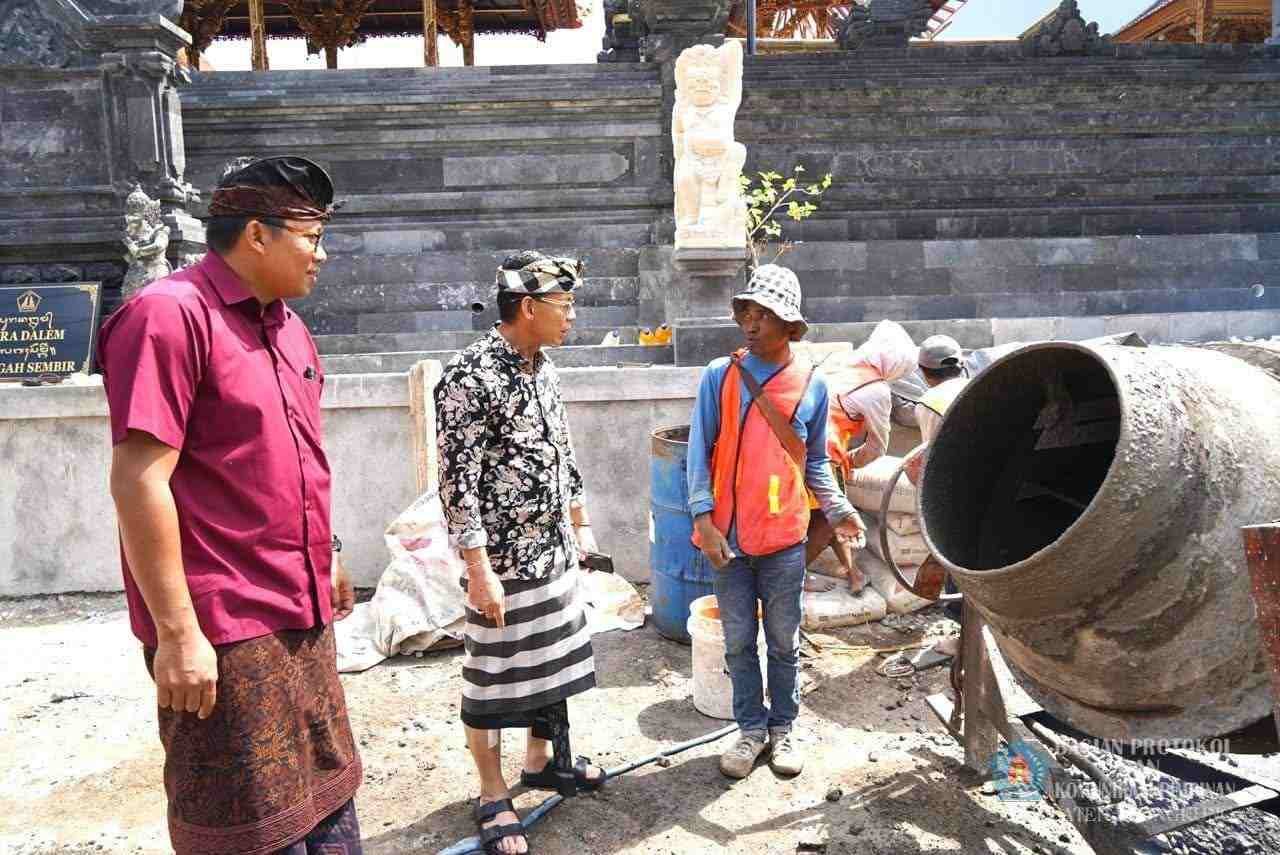 Barometer Bali | Klungkung – Usai menghadiri Upacara Pitra Yadnya/Ngaben Masal di Desa Batukandik, Bupati Klungkung, I Made Satria didampingi Camat Nusa Penida, Kadek Yoga Kusuma meninjau proyek pemeliharaan rutin rabat beton dan senderan di depan Pura Dalem Gelagah, Desa Kutampi, Kecamatan Nusa Penida, Kabupaten Klungkung, Minggu (3/8).