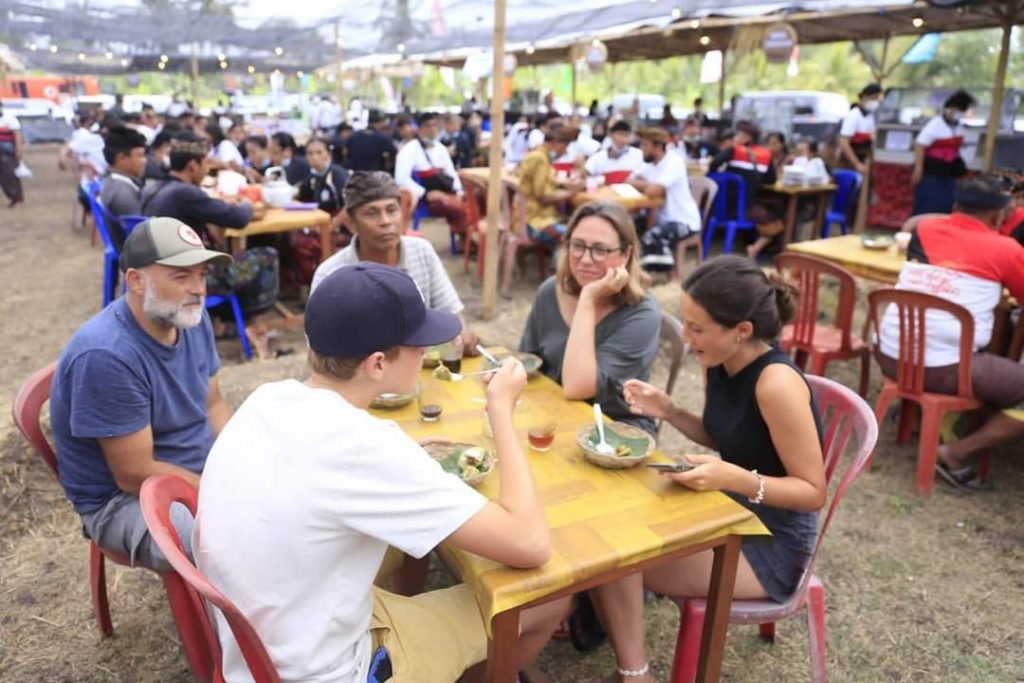 Wisatawan asing turut menikmati hidangan yang disajikan di acara Dewi Klungkung Culinary 2022 (Foto: Hms/Klkg)