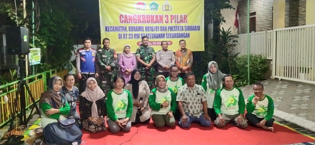 Untuk menjaga situasi kamtibmas di wilayah Sidoarjo Kota tetap aman dan kondusif, gabungan Tiga Pilar terdiri dari Pemerintah, TNI dan Polri tingkat kecamatan melaksanakan Cangkrukan Kamtibmas bersama warga. Kegiatan kali ini berlangsung pada Kamis (13/6/2024) malam, di di RT 23 RW 07, Kelurahan Sekardangan, Kecamatan Sidoarjo Kota.