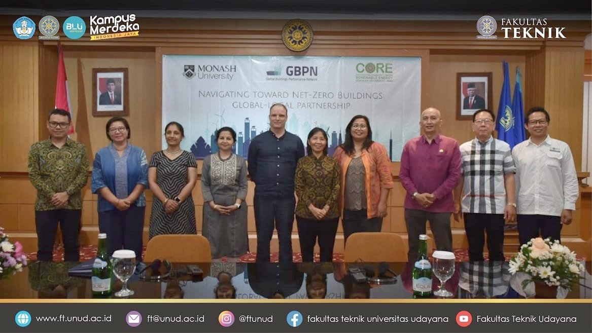 Dalam rangka mendukung pencapaian target nasional dan target Provinsi Bali tersebut, Fakultas Teknik Universitas Udayana (FT Unud) bekerja sama dengan Center for Community-based Renewable Energy (CORE) LPPM Universitas Udayana serta Global Building Performance Network (GBPN) Perancis, melaksanakan diskusi untuk memperkuat jaringan dalam upaya mitigasi pemanasan global dari sektor bangunan dengan mendiskusikan berbagai aspek terkait pengembangan bangunan rendah karbon dan juga mendengarkan bagaimana best practices dan lesson learned pengelolaan sektor bangunan di Australia, India, Indonesia, dan Singapura.