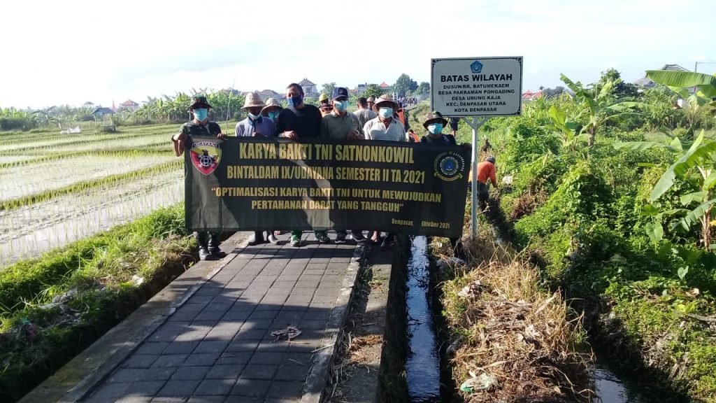 Kegiatan Karya Bakti TNI Satuan non-Kewilayahan Bintaldam IX/Udayana pada Semester II Tahun Anggaran 2021 ini dilaksanakan bersama-sama masyarakat sekitar dalam rangka pembersihan saluran irigasi guna mencegah terjadinya banjir terlebih sudah mulainya musim penghujan.