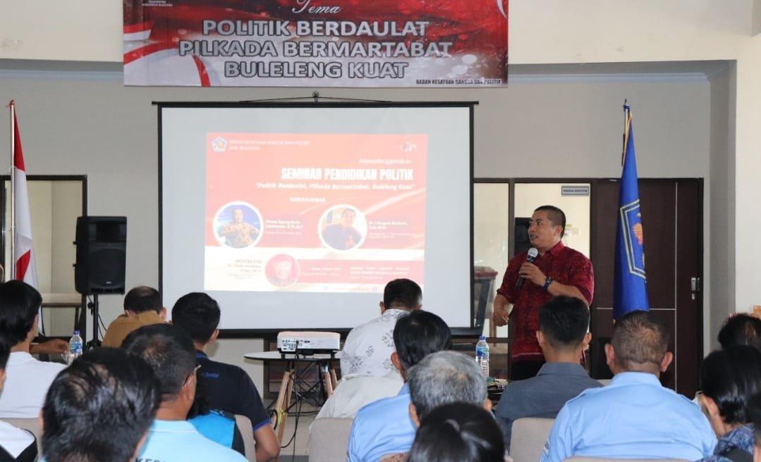 Foto: Kegiatan seminar pendidikan politik yang diselenggarakan Kesbangpol Kabupaten Buleleng di Buleleng, Senin (10/6/2024). (Sumber: Istimewa).