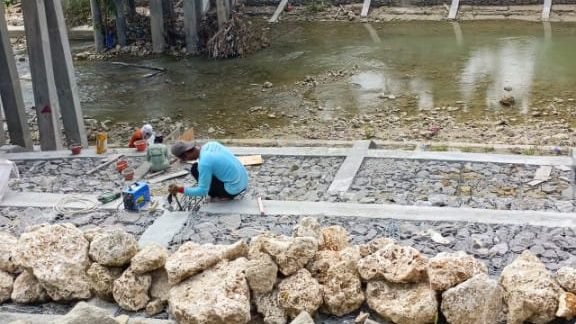 Foto: Proyek rehabilitasi perkuatan tebing Jembatan Ngaglik di Kecamatan Kedungadem, Kabupaten Bojonegoro. (barometerbali/redho)