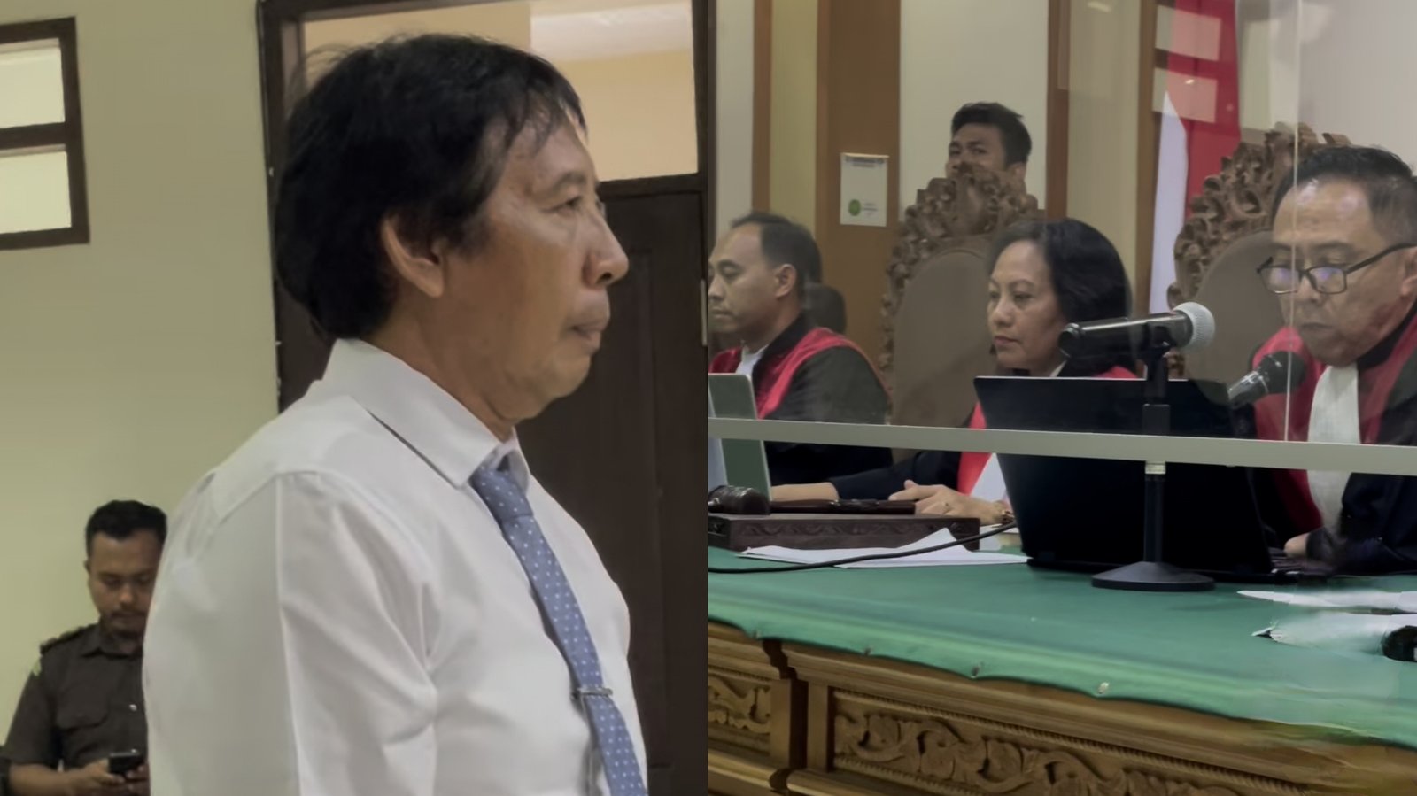 Kolase foto: Ketua Majelis Hakim Agus Akhyudi vonis bebas mantan Rektor Unud Prof Nyoman Gde Antara (kiri) dalam sidang di Pengadilan Tipikor, Denpasar, Kamis (22/2/2024). (Sumber: BB/ig@hotmanparisofficial/213)
