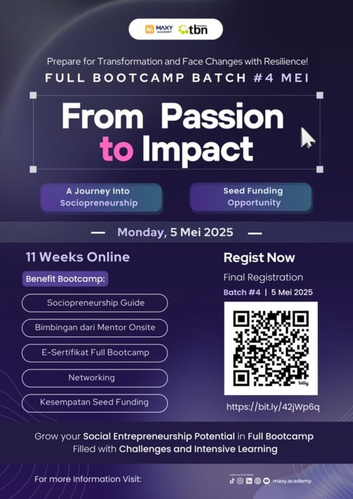 Melihat kebutuhan tersebut, MAXY Academy menghadirkan kembali program Full Bootcamp: Sociopreneurship, sebuah ruang belajar intensif bagi generasi muda yang ingin membangun bisnis berbasis misi sosial.