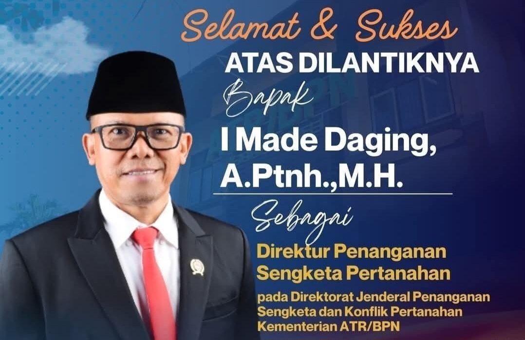 Sebagai Direktur Penanganan Sengketa Pertanahan, Made Daging akan berhadapan dengan tantangan besar, mulai dari persoalan tumpang tindih sertifikat hingga konflik agraria berskala nasional yang sering kali melibatkan masyarakat, investor, maupun lembaga negara.