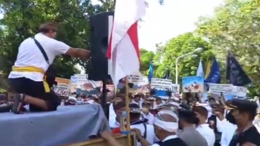 “Kami turun ke jalan hari ini, dalam artian masyarakat kami jangan lagi dijadikan korban. Ini menjadi pertanyaan besar, ini negara kita negara kekuasaan apa negara demokrasi. Poin pentingnya kami menolak, kami menolak pembangunan terminal LNG. LNG-nya kami terima sudah benar di Benoa, tapi kenapa sekarang harus dibawa ke mangrove di wilayah kami, itu saja,” ujar Arjaya.