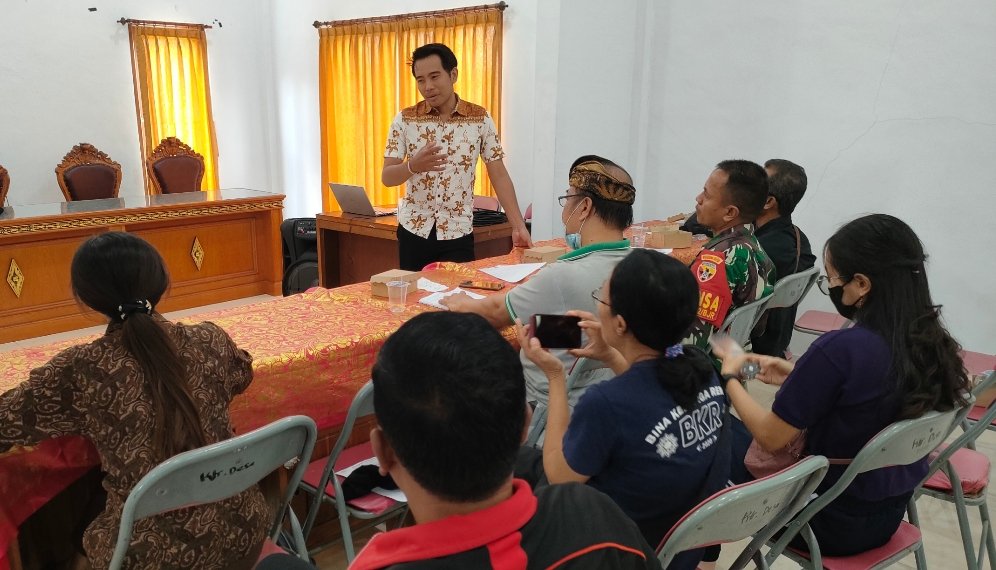 Foto: Dosen pendamping dari Polnas I Wayan Agus Selamet SPar, MPar menjadi narasumber dalam pelatihan pengelolaan desa wisata di aula Kantor Desa Negari, Kecamatan Banjarangkan, Klungkung, di kantor desa setempat, Jumat (9/6/23). (BB/Ngurah Dibia)