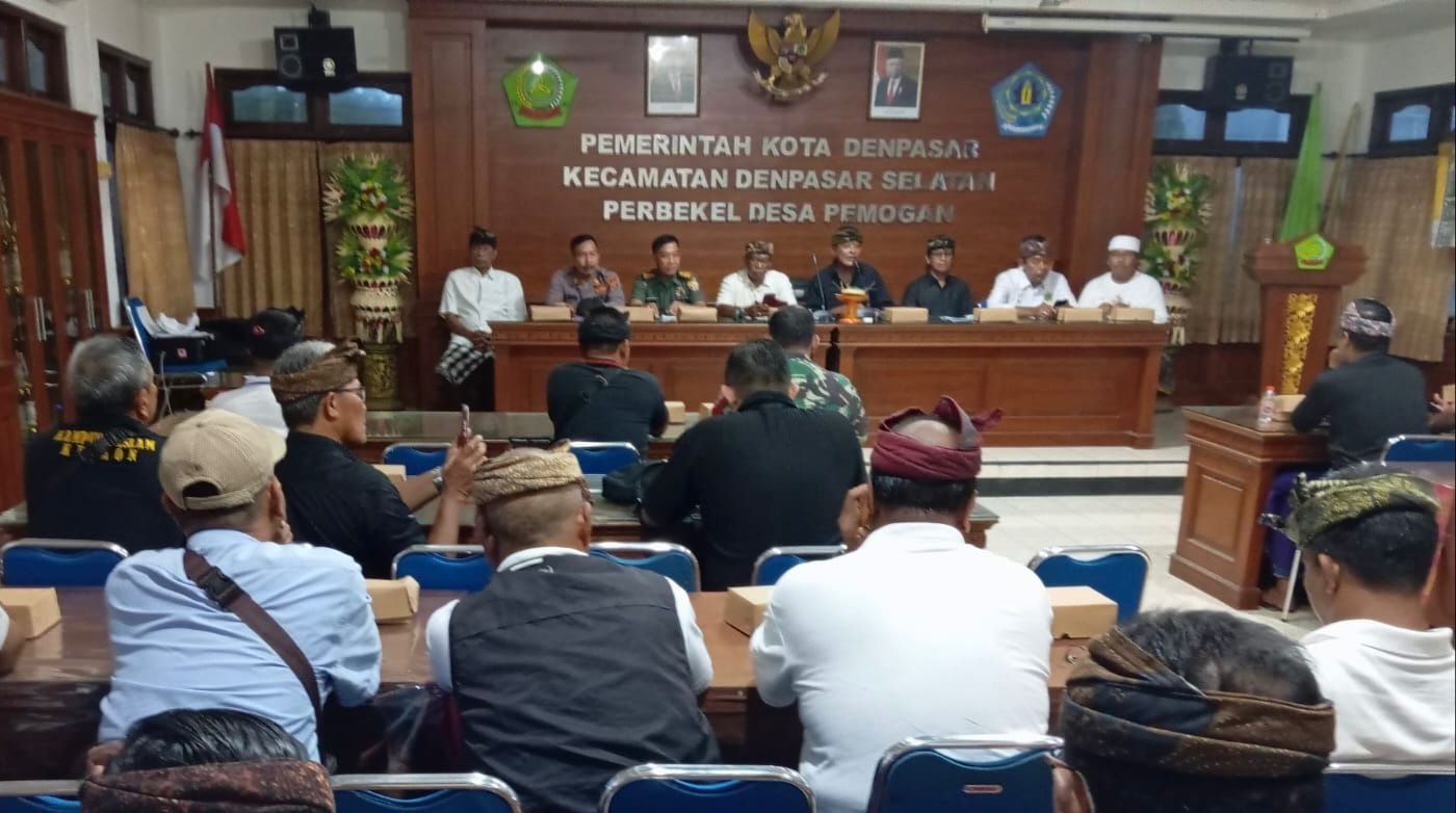 Hadir dalam kesempatan tersebut Babinsa Desa Pemogan, Babinkamtibmas Desa Pemogan, Bendesa Adat setempat, Tokoh Masyarakat, Kepala Kewilayahan, Pacalang, Klian Adat se-Desa Pemogan, Perwakilan organisasi kemasyarakatan serta undangan lainya.