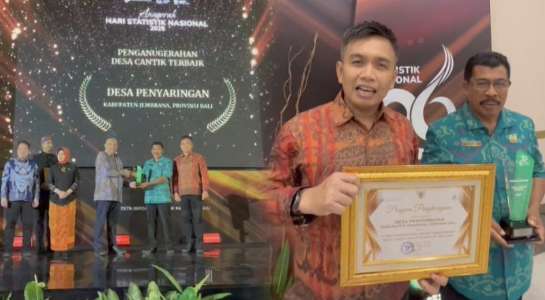 Barometer Bali | Jembrana – Desa Penyaringan, Kecamatan Mendoyo, berhasil masuk dalam tiga besar Desa Terbaik dan menerima penghargaan sebagai Desa Cinta Statistik (Cantik) Terbaik dari Badan Pusat Statistik Republik Indonesia (BPS RI).